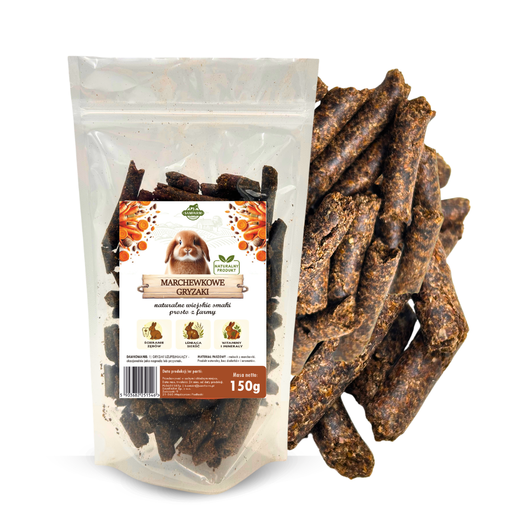 Gryzaki marchewkowe to naturalny gryzak w diecie królików i gryzoni, pomagający na: