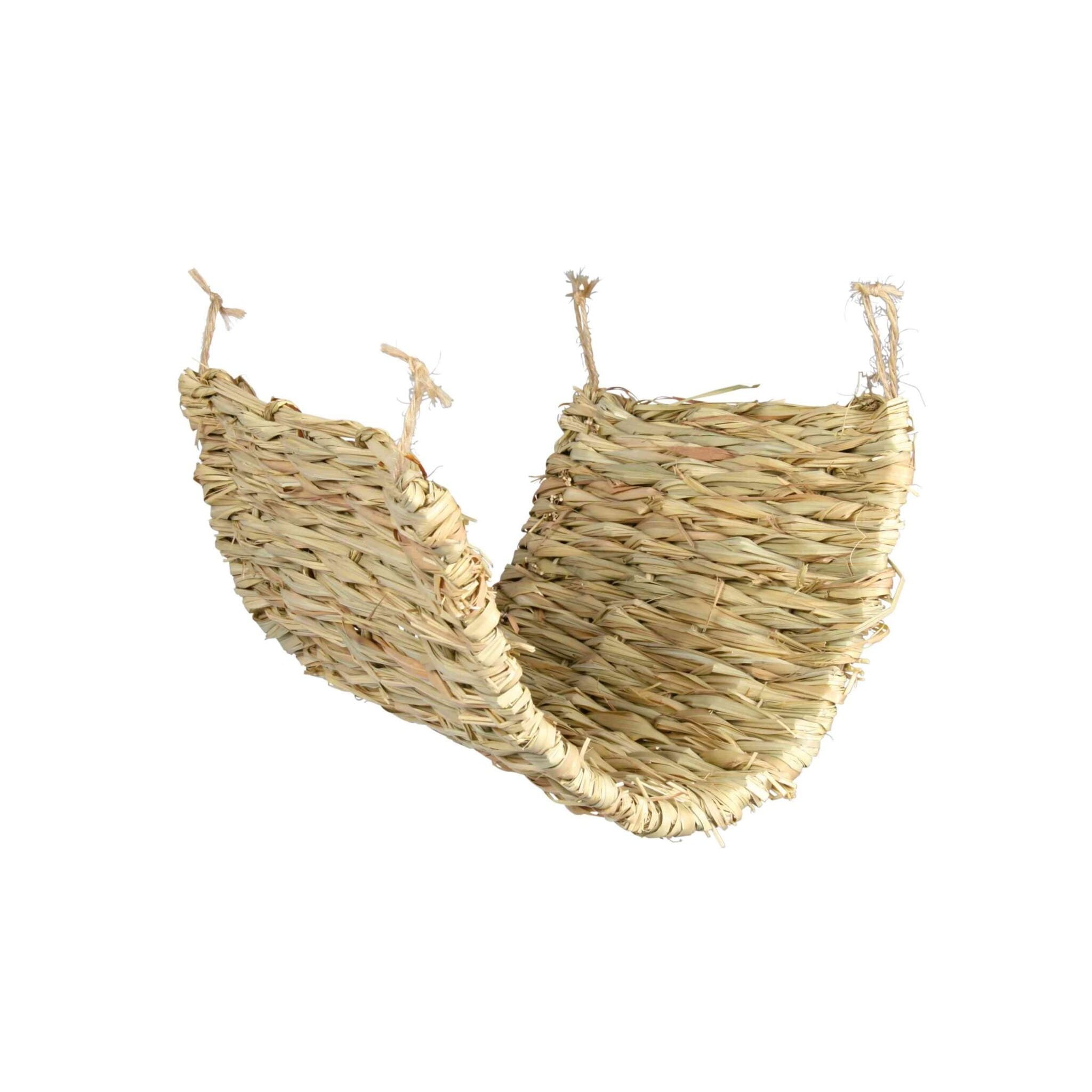 Hamak z siana to doskonałe miejsce do zabawy i relaksu dla krolików i gryzoni. Wyposażony w pętelki do zawieszenia, może być łatwo zamontowany w klatce. Produkt wykonany jest w 100% z naturalnych materiałów, co gwarantuje bezpieczeństwo i komfort dla zwierząt.