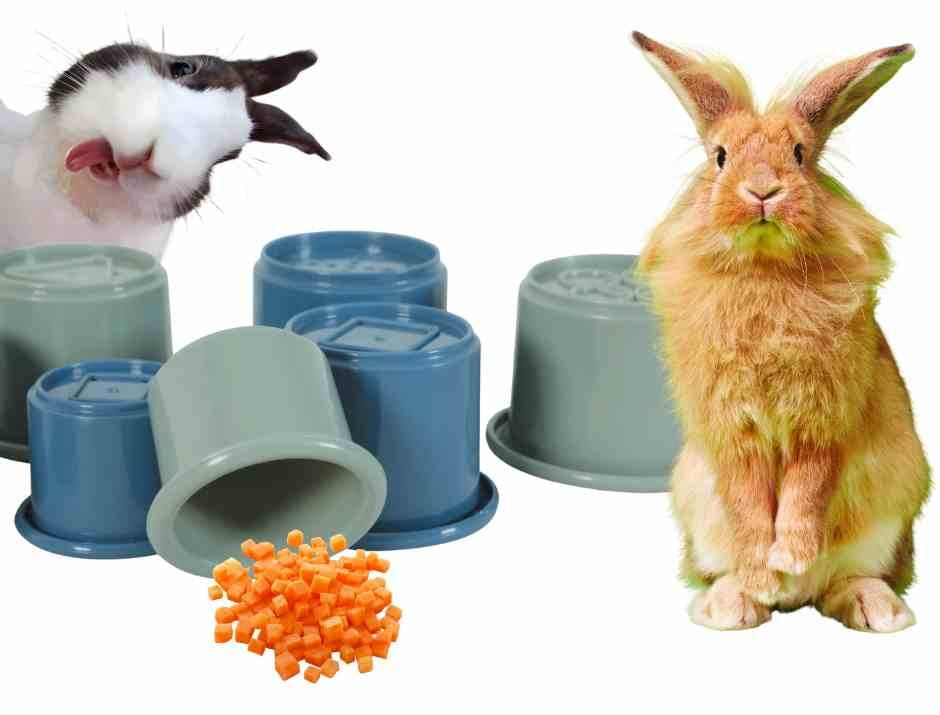 pod kubeczkami ukrywasz przysmaki, zadaniem zwierzaka jest trącanie kubeczków pyszczkiem lub łapkami w celu ich przewrócenia i zdobycia przysmaków