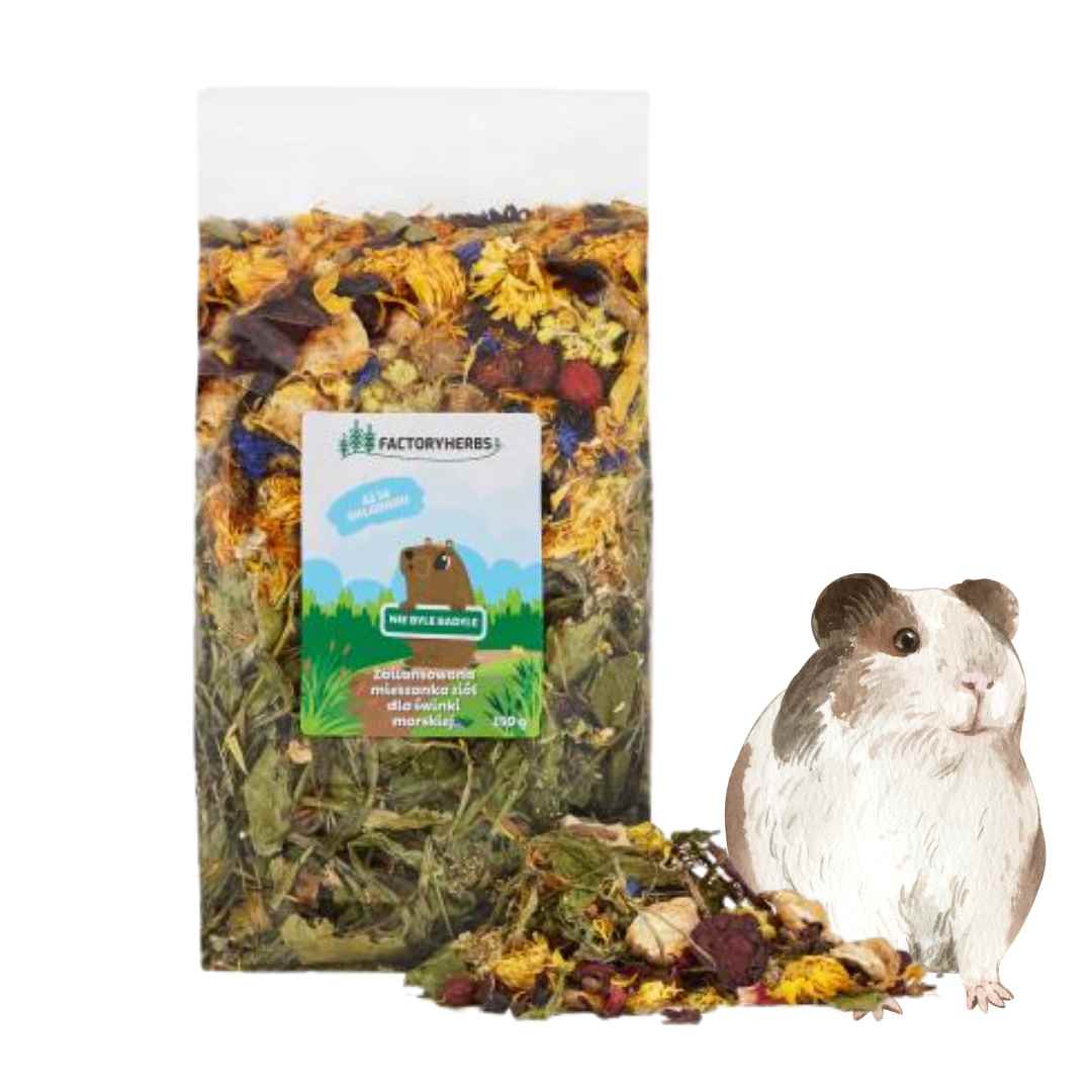 Przeznaczenie: świnki morskieZalecany sposób stosowania: jako uzupełnienie diety codziennie, 1 garść na jednego osobnika, w zależności od wielkości i potrzeb zwierzęcia.